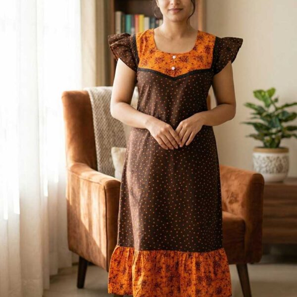 Short And Trendy Cotton Nighty with Round Neck – Brown