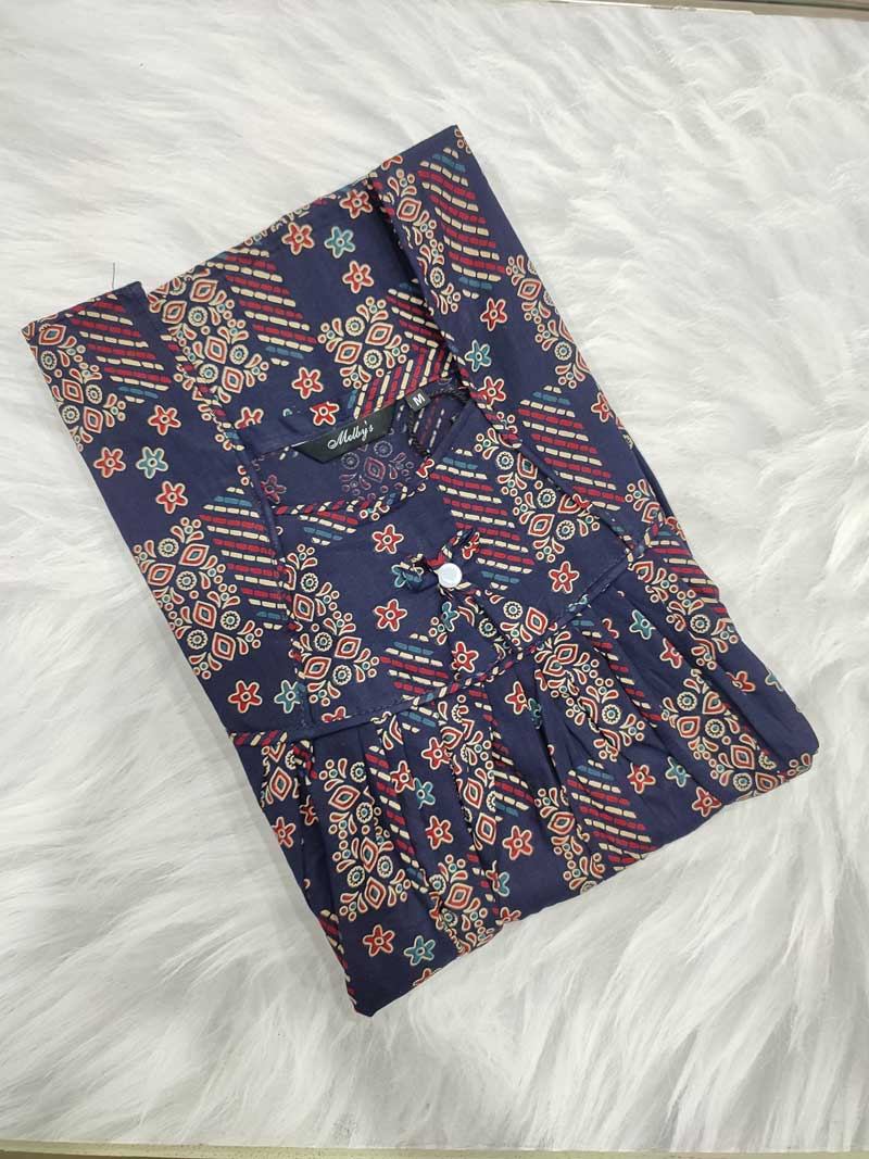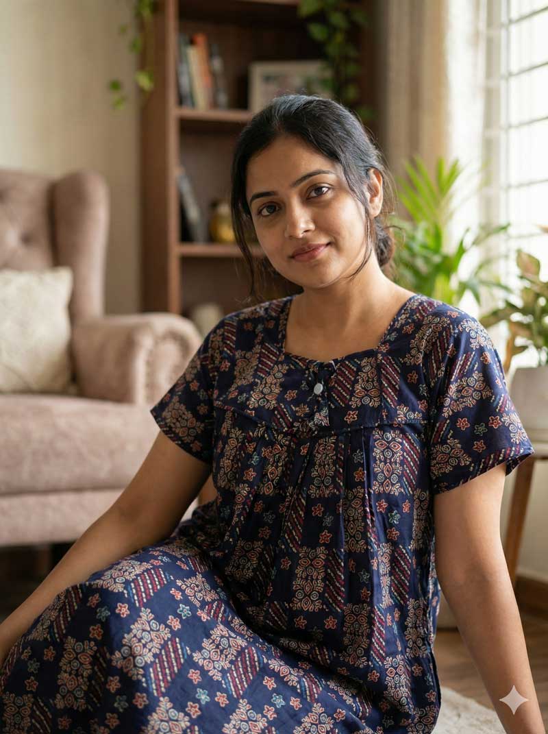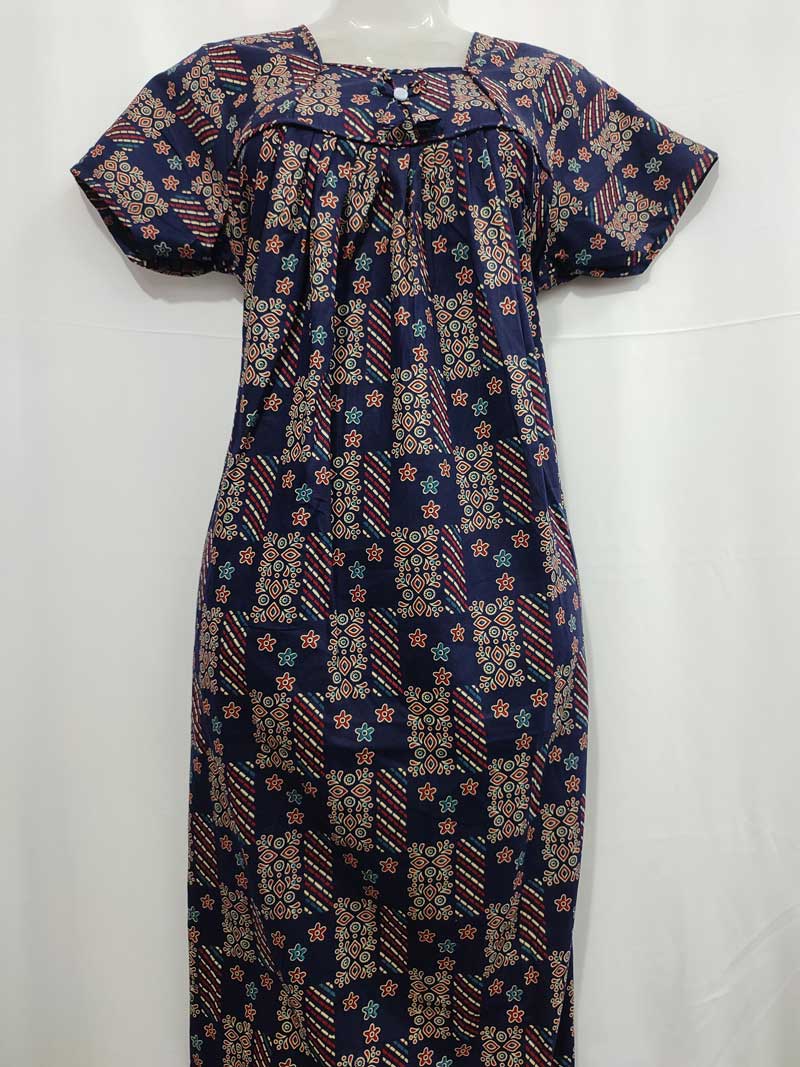 Traditional Ajrakh Nighty, 55 Inches Length – Dark Blue