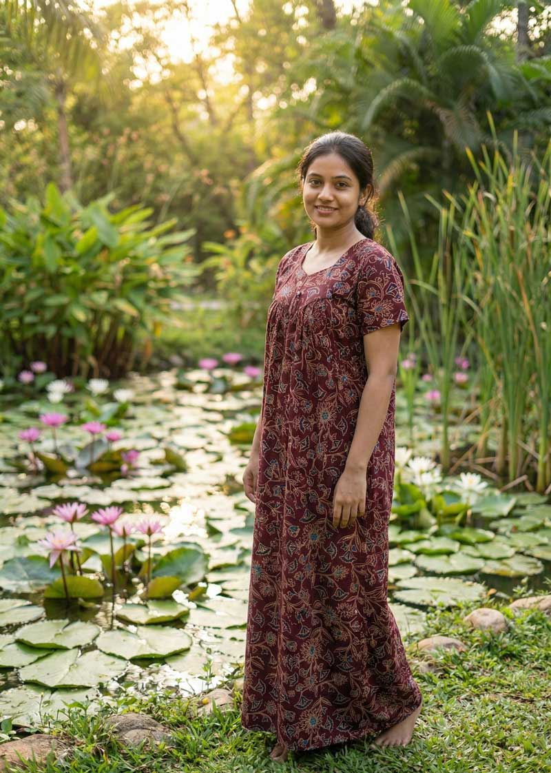 Traditional Ajrakh Nighty, 55 Inches Length – Maroon