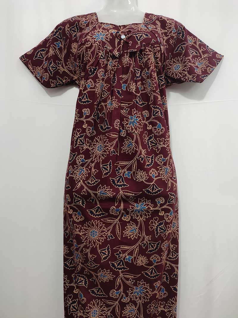 Comfortable Cambric Cotton Nighty With Buttons -55 Inches Long