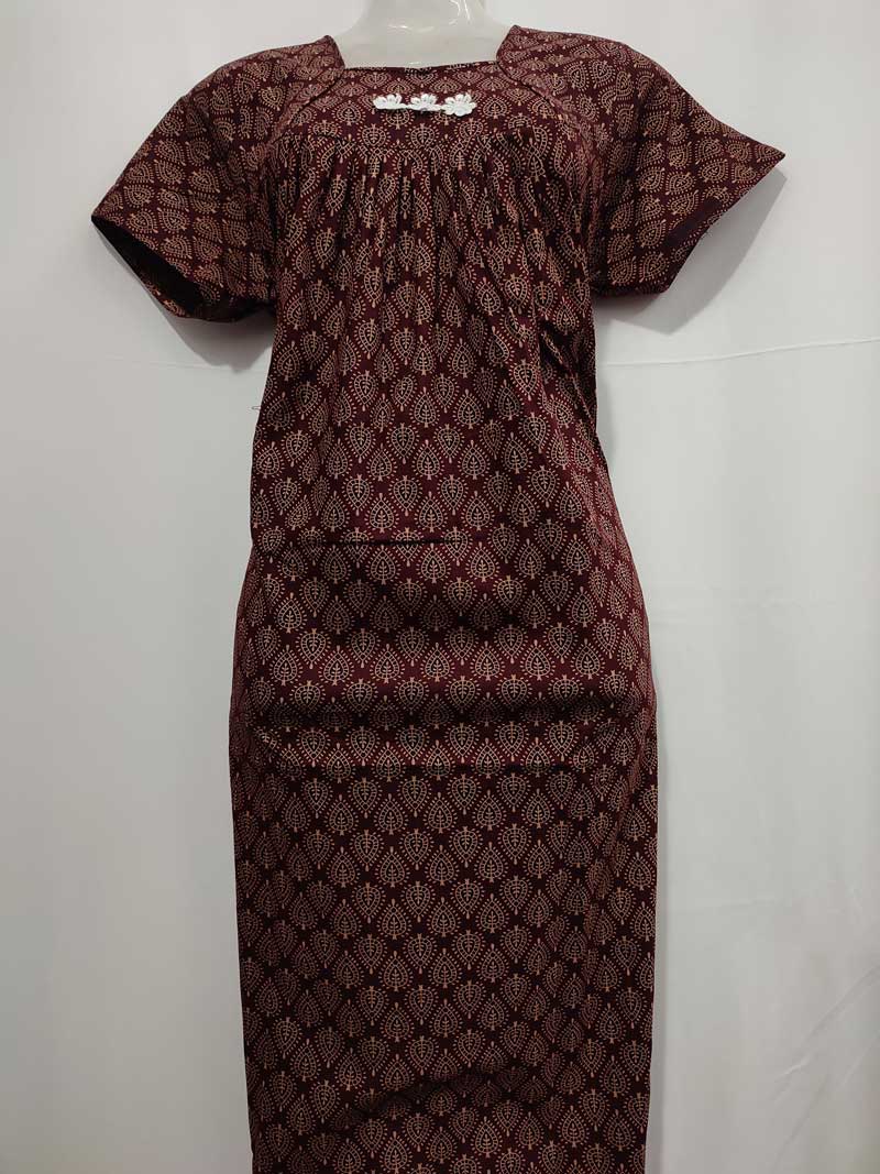 Comfortable Cotton Nighty With Buttons, 57 Inches Long – Brown