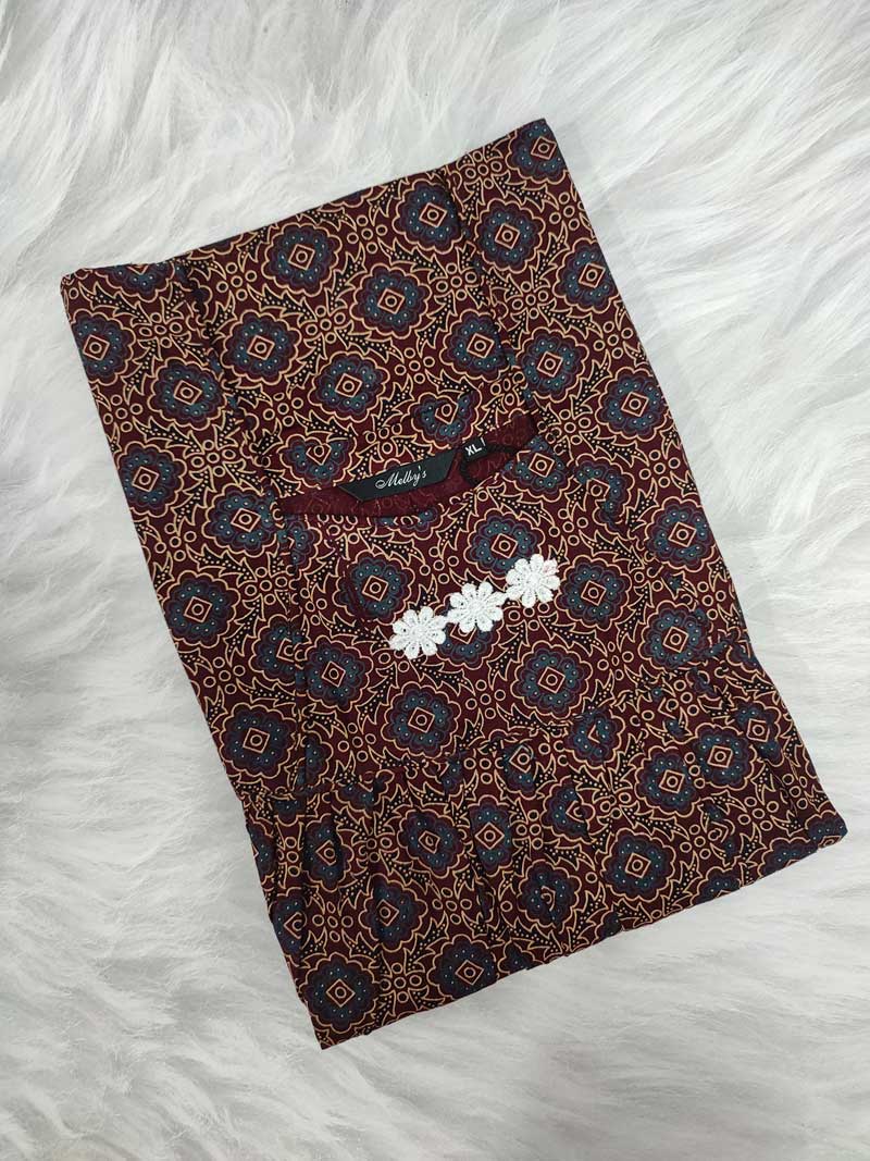 Traditional Ajrakh Nighty, 55 Inches Length – Maroon