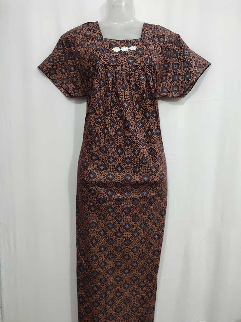 Comfortable Cotton Nighty With Buttons, 57 Inches Long – Brown