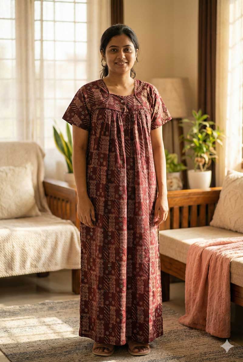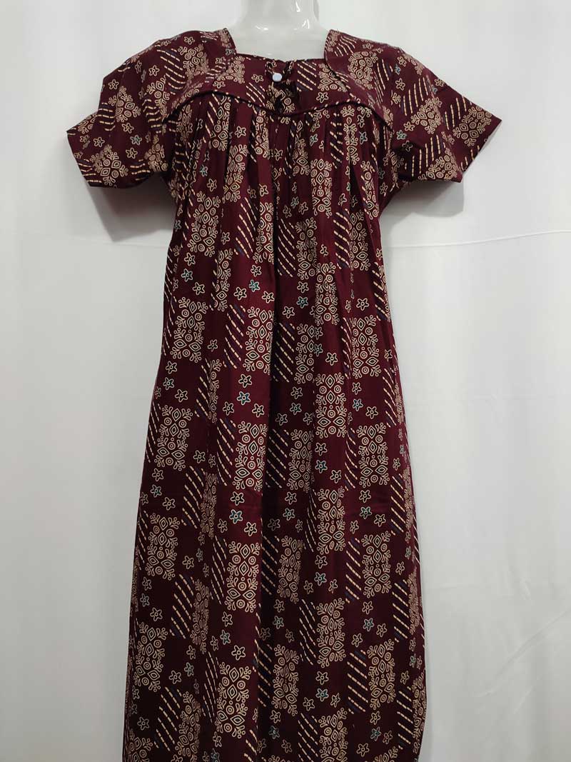 Traditional Ajrakh Nighty, 55 Inches Length – Maroon