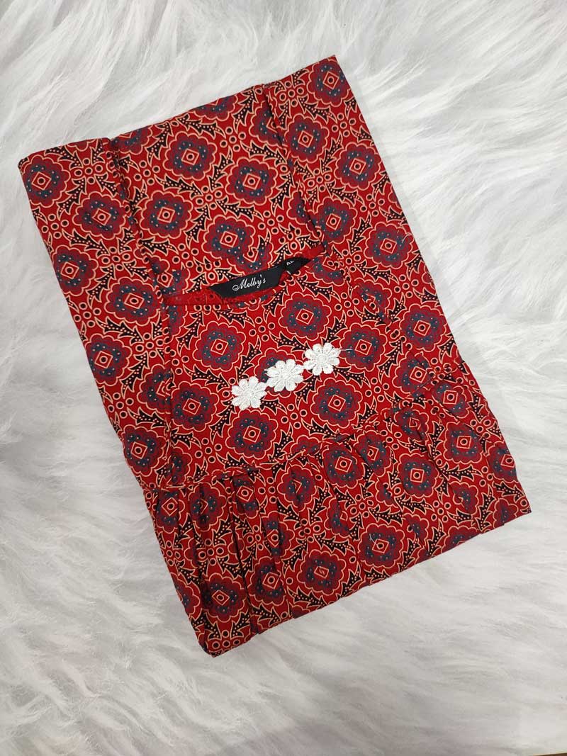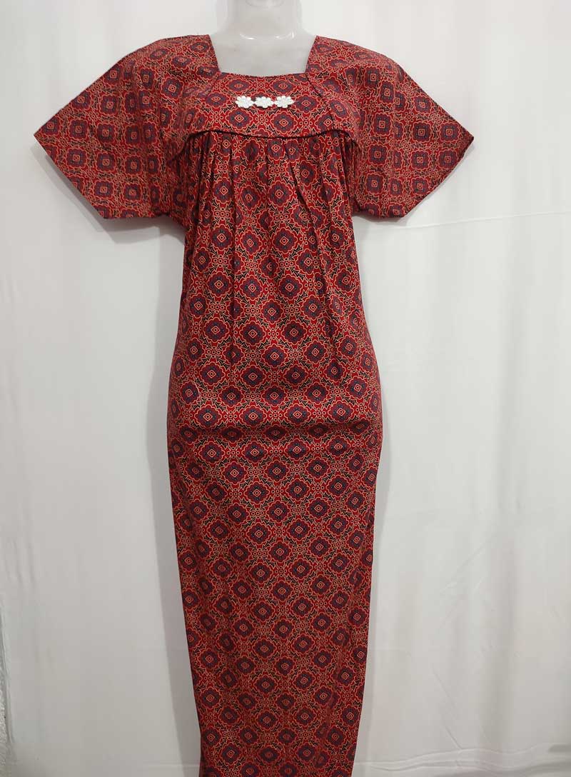 Traditional Ajrakh Nighty, 55 Inches Length – Red