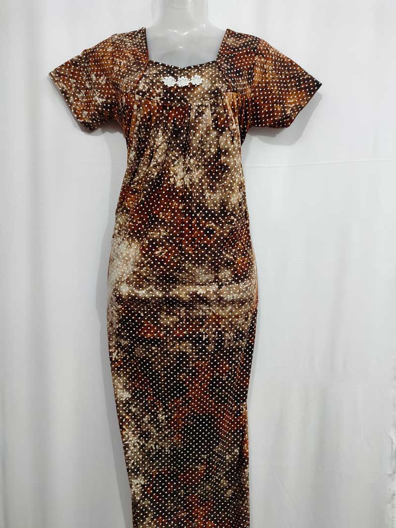 Comfortable Cotton Nighty With Zip, 57 Inches Long – Orange Brown