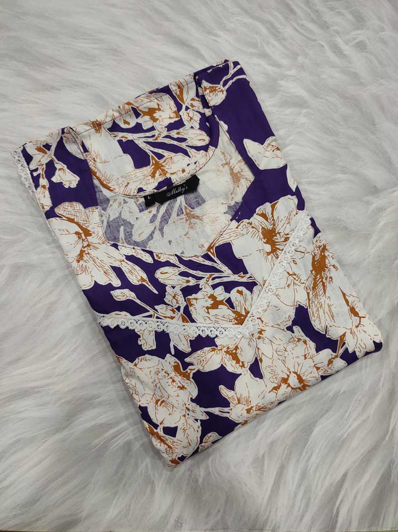 Traditional Cotton Frock Nighty, 55 Inches Length – Violet