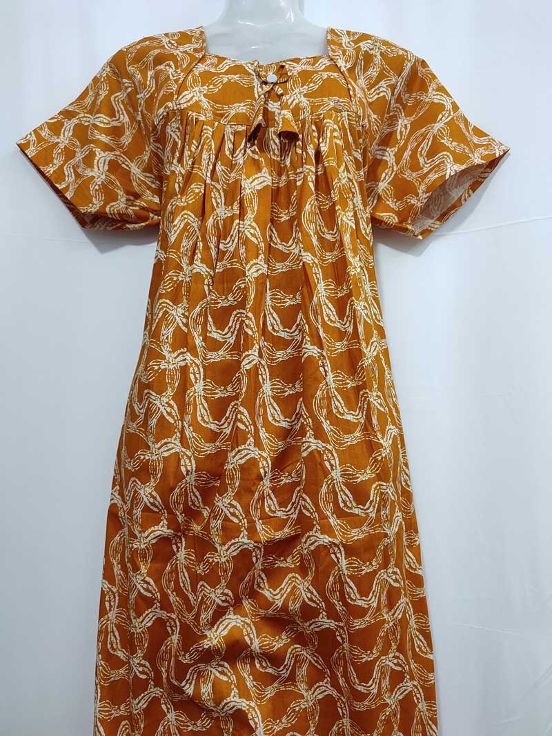 Traditional Cotton Frock Nighty, 55 Inches Length – Yellow