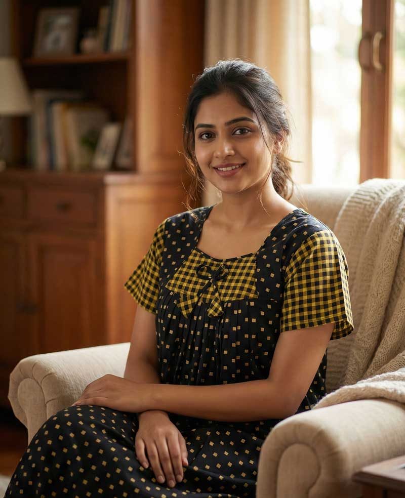 This nighty can be hand washed or a normal machine washed with cold water. Please make sure to dry the nighty in a light shade away from direct sunlight.