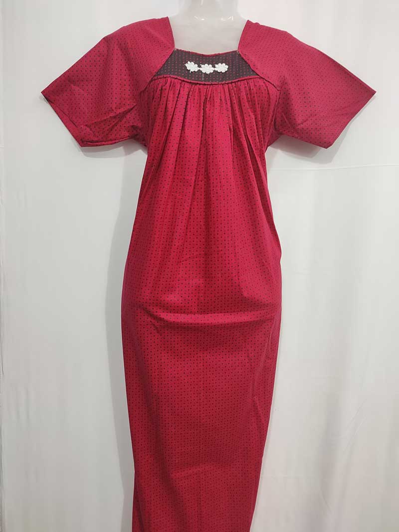 Front Open Cotton Nighty With Buttons, 55 Inches Long – Maroon