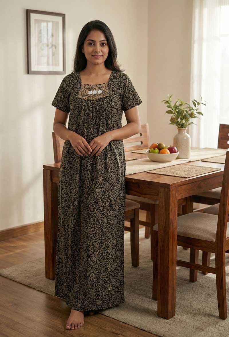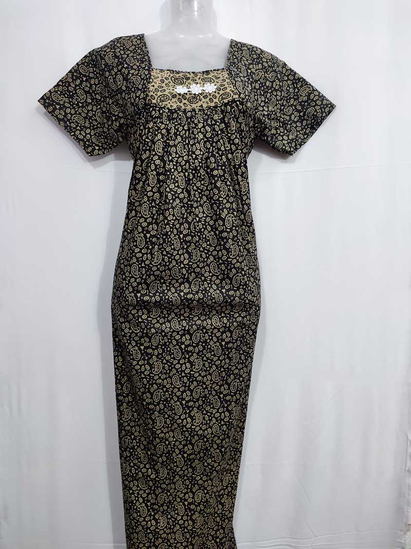 Comfortable Traditional Cotton Nighty – 55 inches long – Black