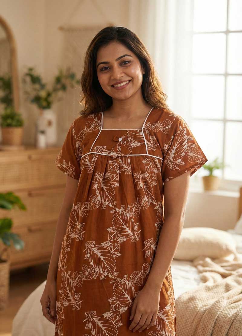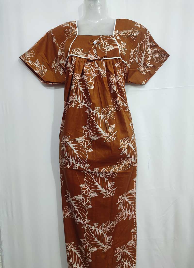 Traditional cotton nighty, 55 Inches Length – Brown