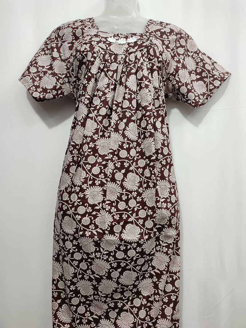 Traditional Cotton Nighty, 55 Inches Length – Brown
