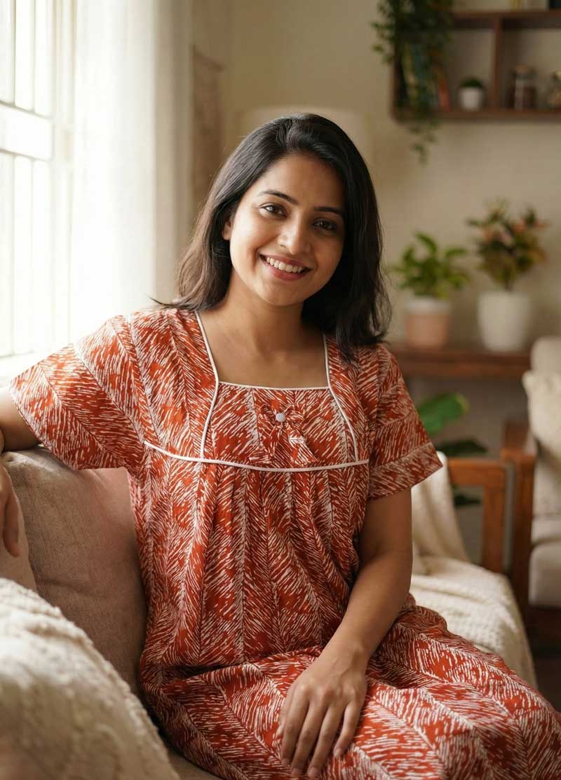 This nighty can be hand washed or a normal machine washed with cold water. Please make sure to dry the nighty in a light shade away from direct sunlight.