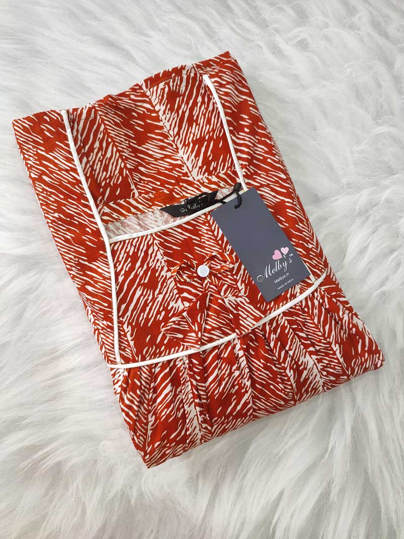 Comfortable cotton nighty With Buttons -55 inches long- Red