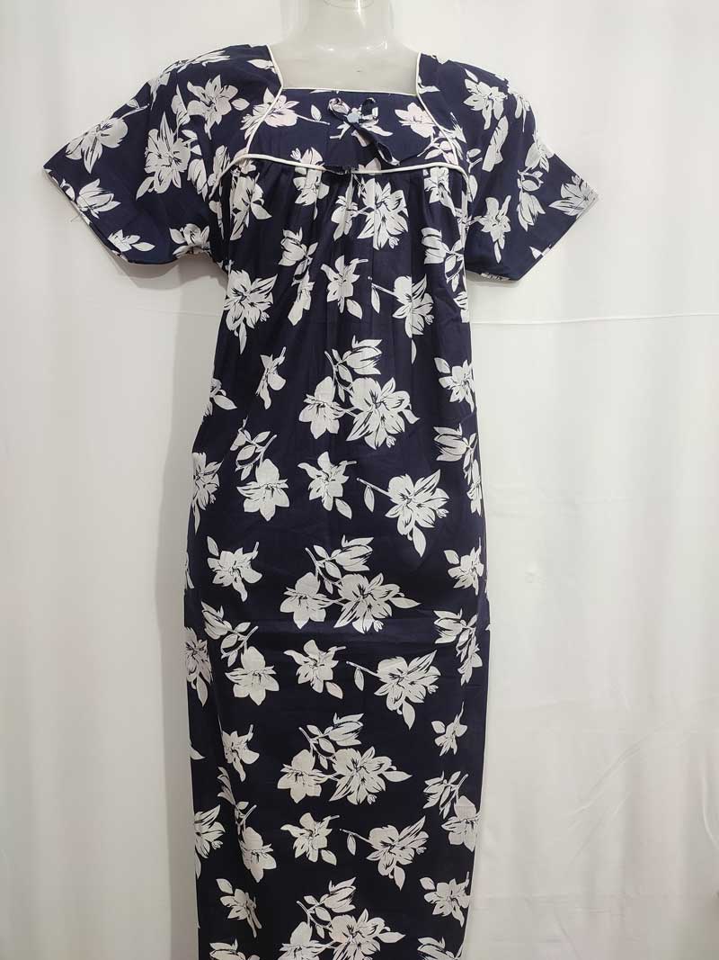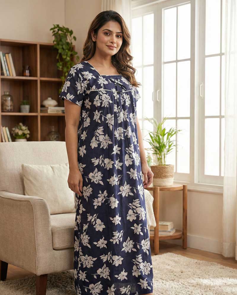 Traditional cotton nighty, 55 Inches Length – Dark Blue