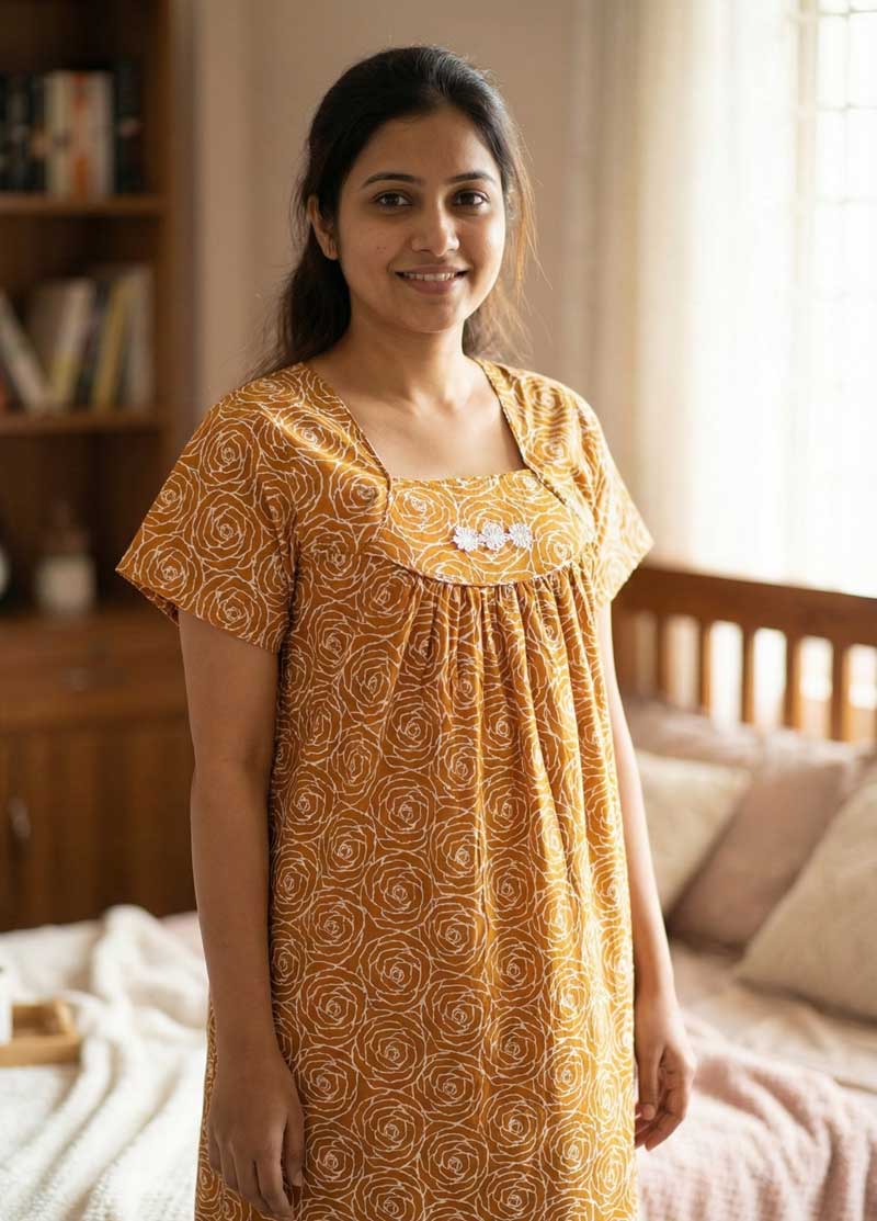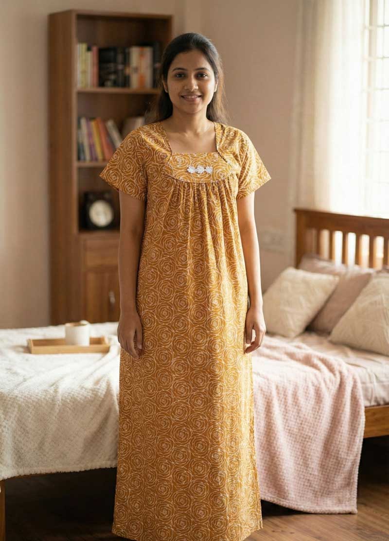 Be the first to review “Traditional cotton nighty, 55 Inches Length – Golden Yellow”