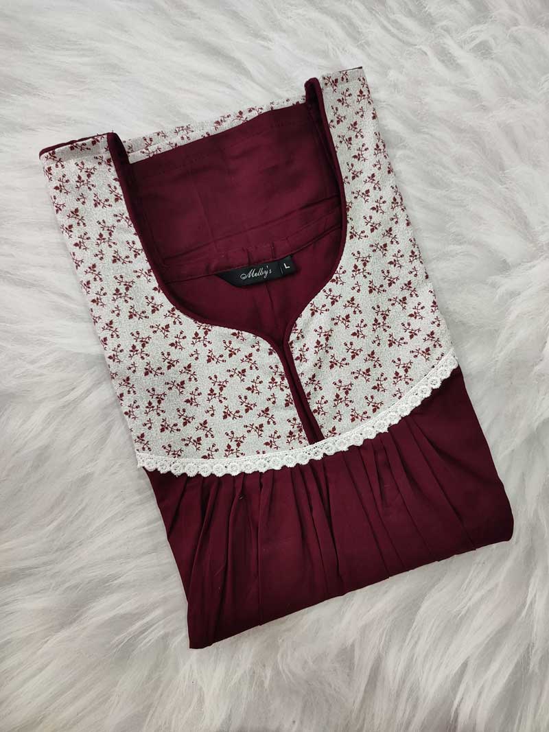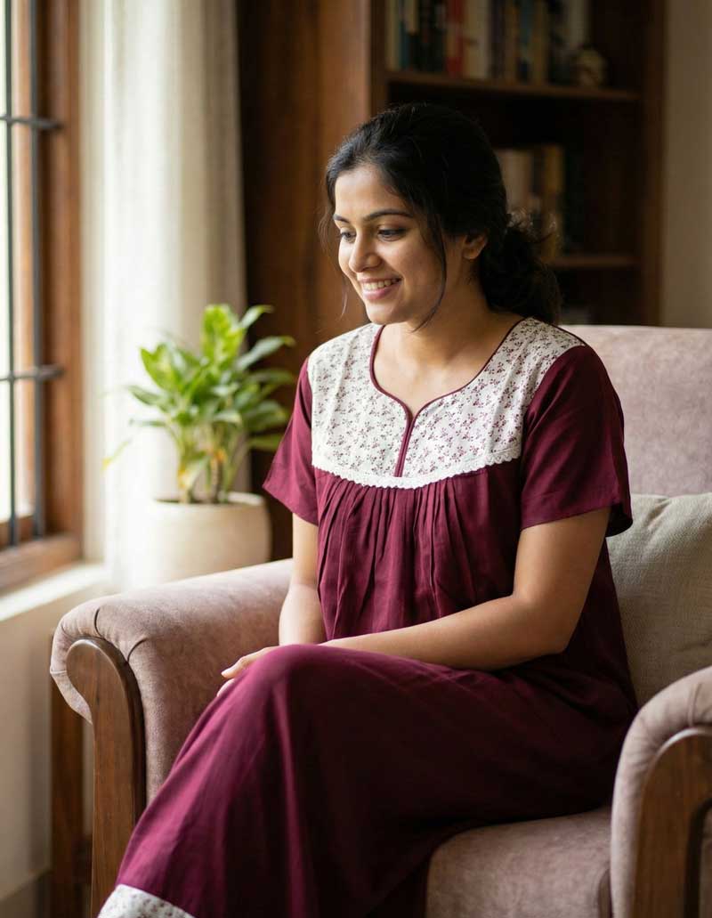 Traditional Cotton Nighty, 55 Inches Length – Grape Wine