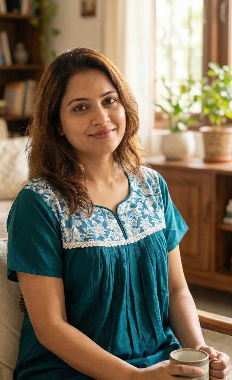 This nighty can be hand washed or a normal machine washed with cold water. Please make sure to dry the nighty in a light shade away from direct sunlight.