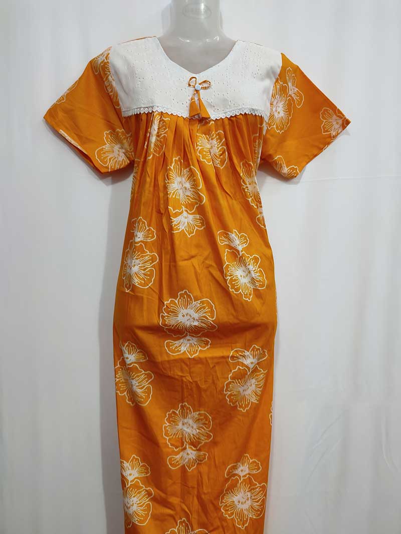 Traditional Cotton Nighty, 55 Inches Length, Hacoba Yoke – Yellow