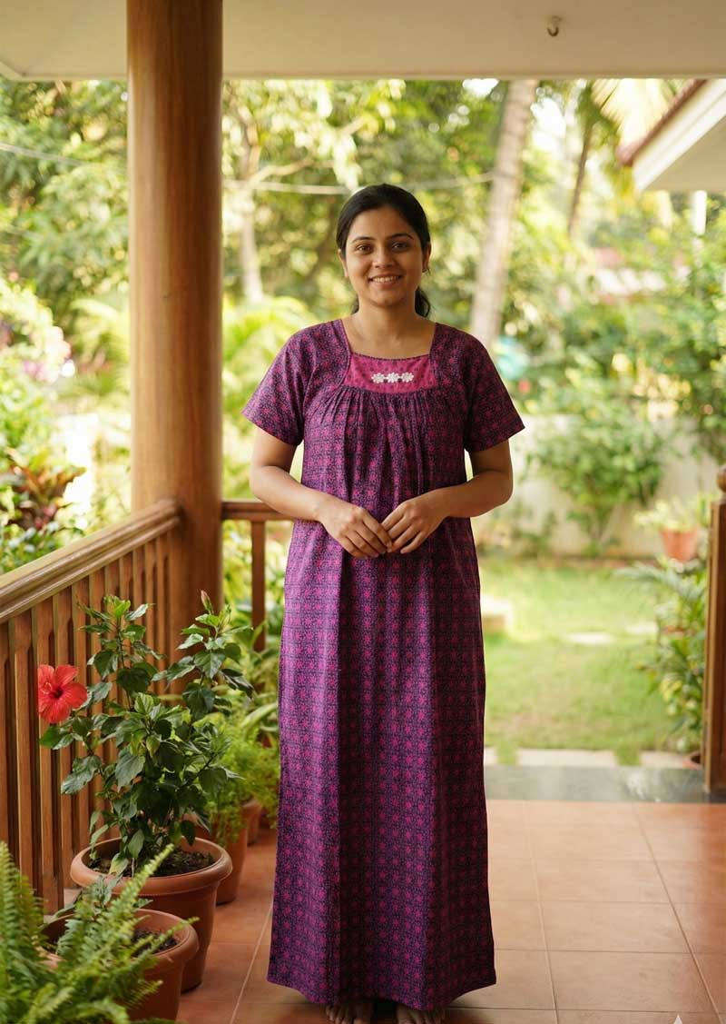 Pure Cotton Pleated Nighty