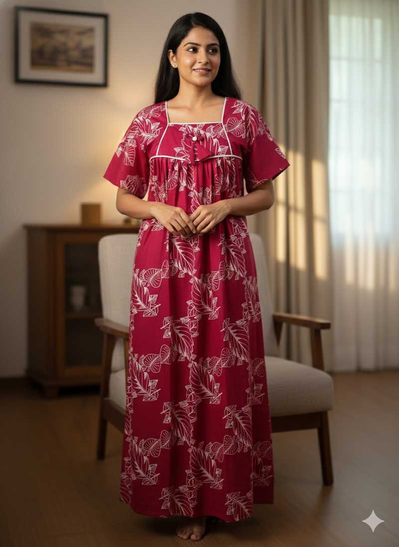 Traditional cotton nighty, 55 Inches Length – Majenta Colour