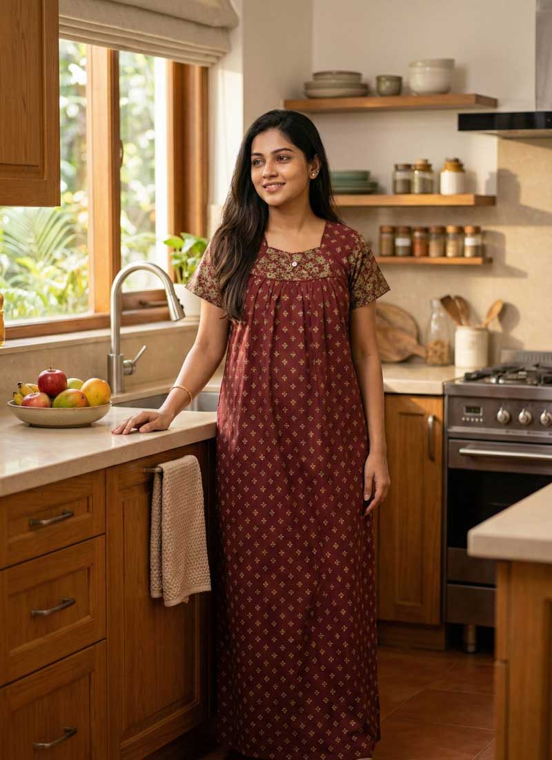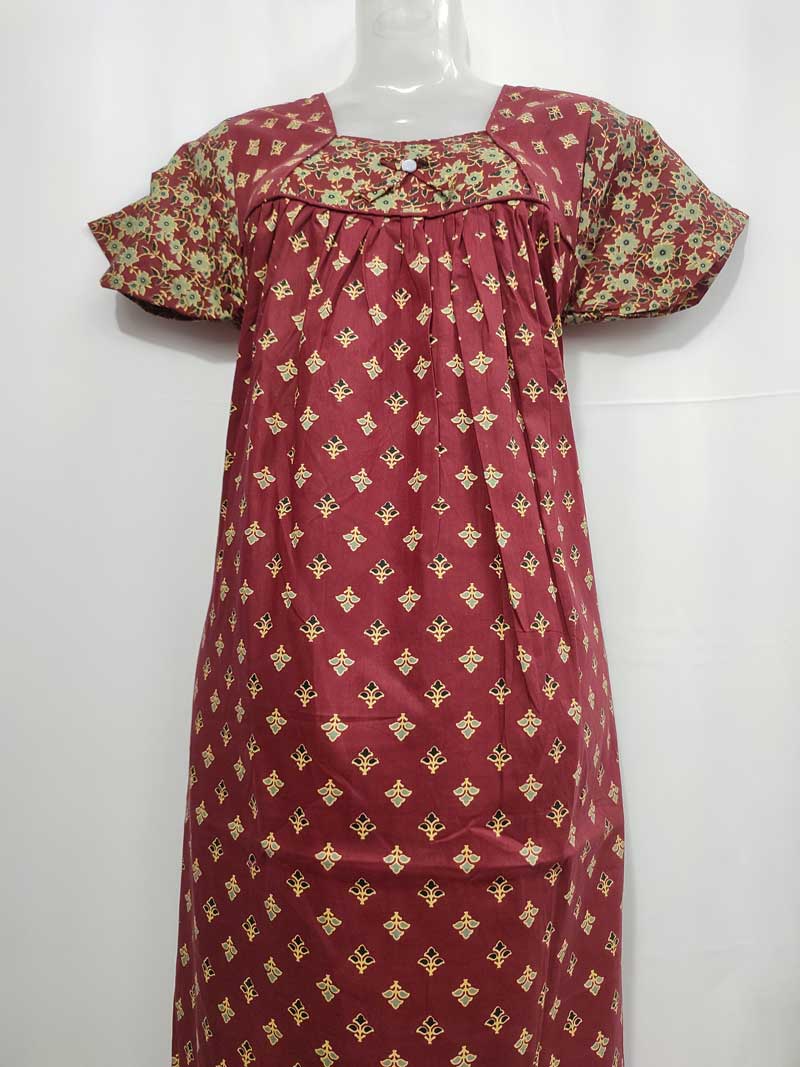 Traditional Cotton Nighty, 55 Inches Length – Maroon