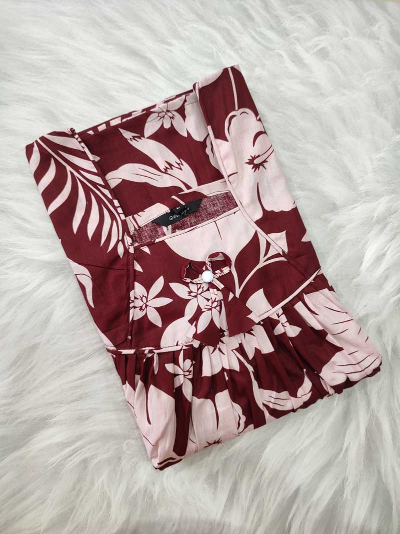 Traditional Cotton Nighty, 55 Inches Length – Maroon