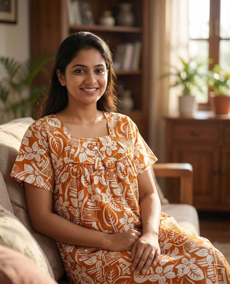 Traditional Cotton Nighty, 55 Inches Length – Orange