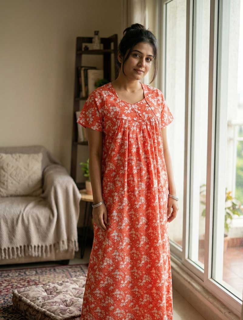 This nighty can be hand washed or a normal machine washed with cold water. Please make sure to dry the nighty in a light shade away from direct sunlight.