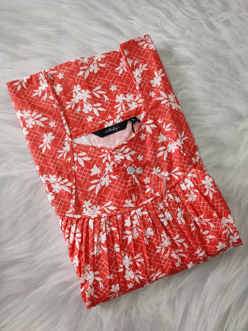 Premium Quality Cambric Cotton Nighty With Buttons -55 Inches Long – Red