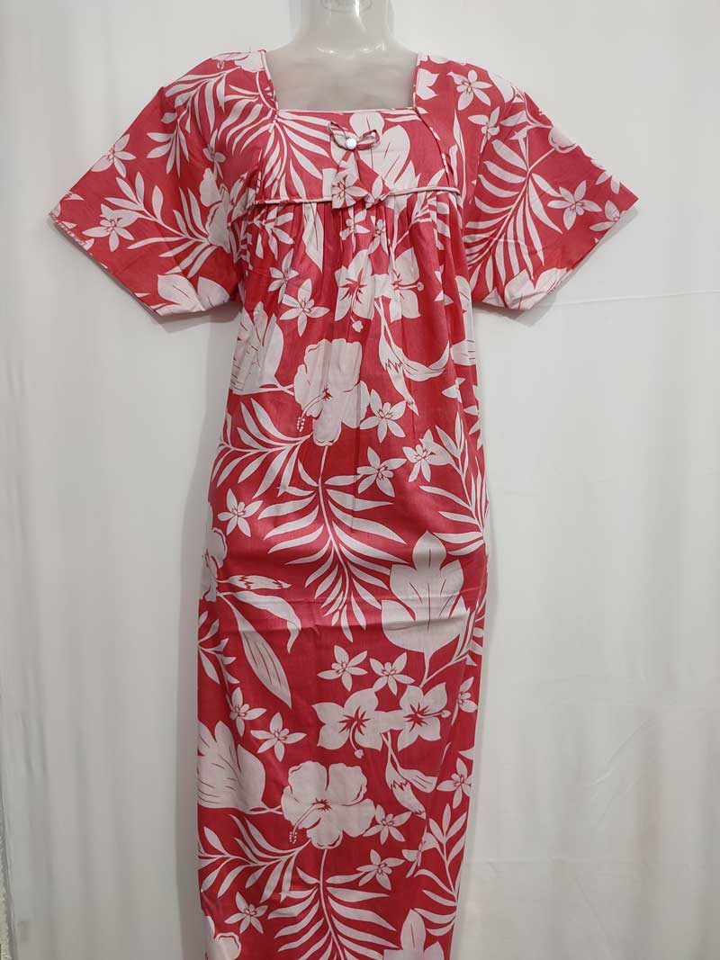 Comfortable Cambric Cotton Nighty With Buttons -55 Inches Long