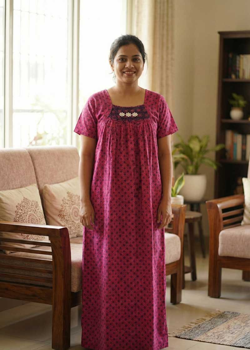 Traditional Cotton Nighty, 55 Inches Length – Rose