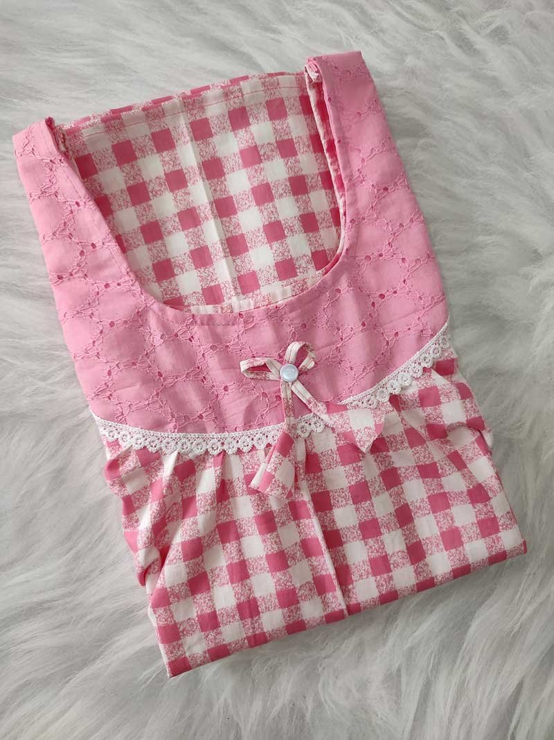 Traditional Cotton Nighty, 55 Inches Length, Round Neck – Rose