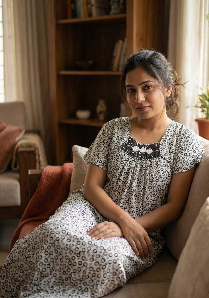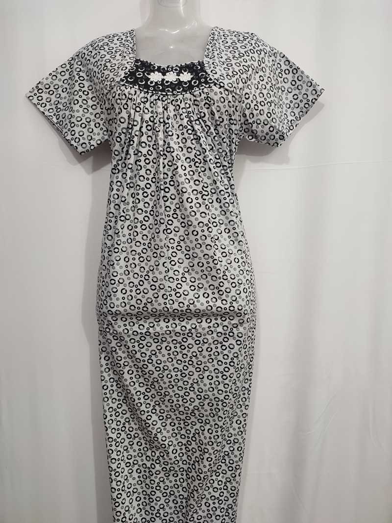 Premium Cambric Cotton Nighty With Long Sleeves – Buttons Type