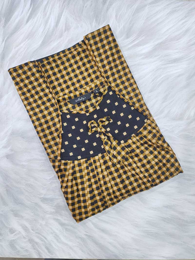 Traditional Cotton Nighty, 55 Inches Length – Yellow + Black