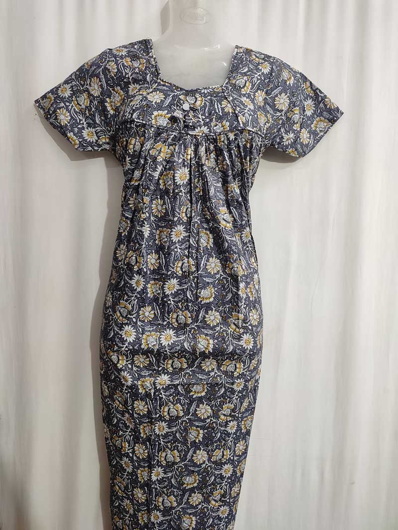Traditional cotton nighty, 55 Inches Long – Ash