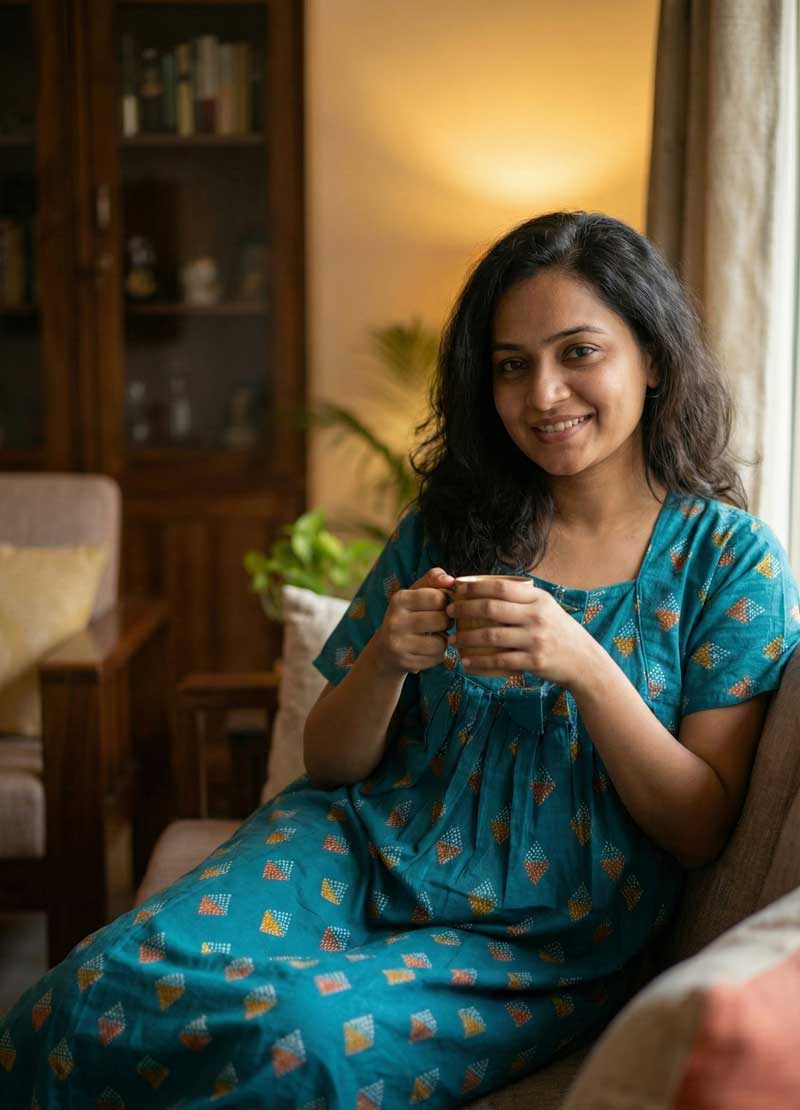 This nighty can be hand washed or a normal machine washed with cold water. Please make sure to dry the nighty in a light shade away from direct sunlight.