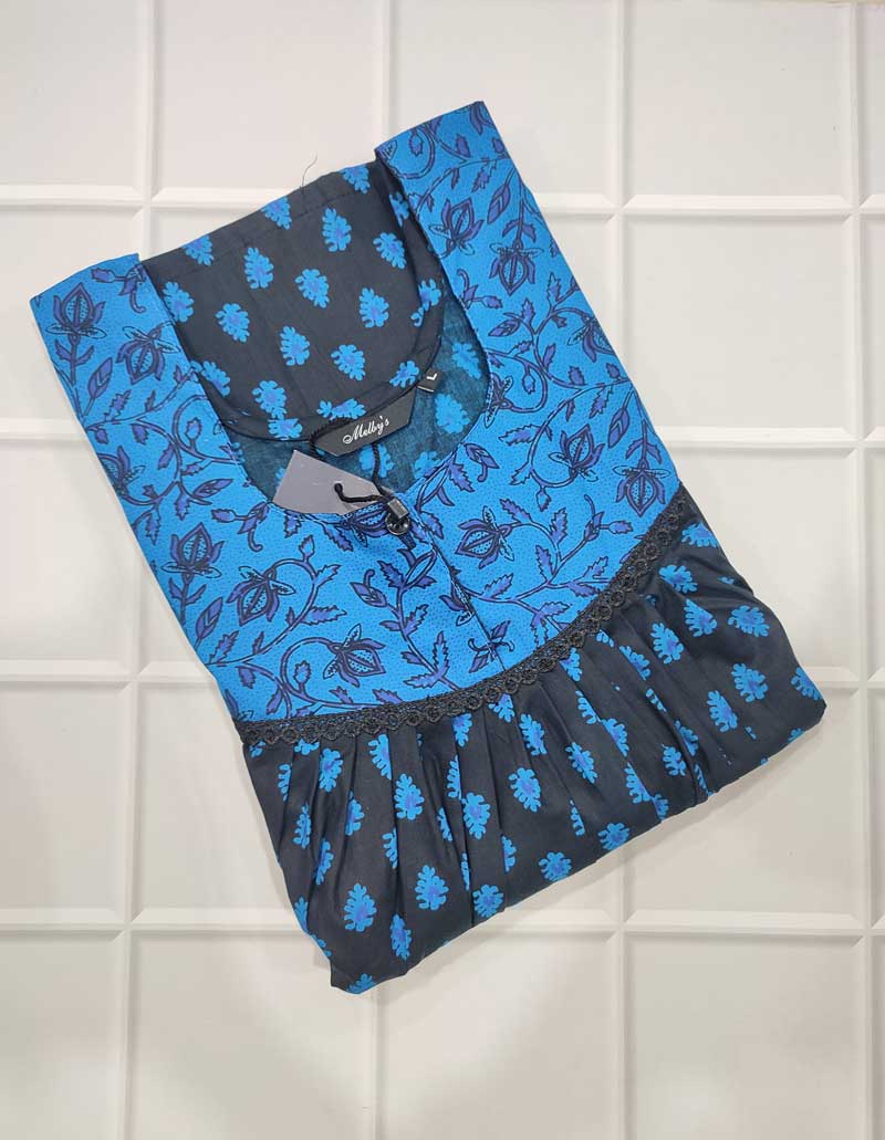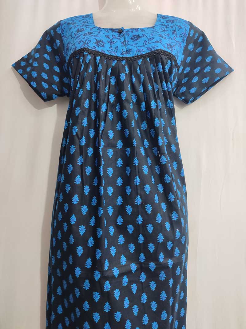 Be the first to review “Traditional cotton nighty, 55 Inches Long – Blue”