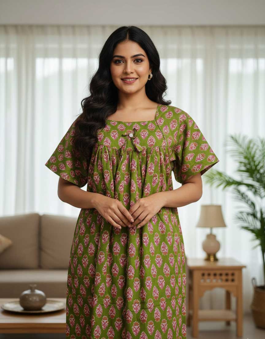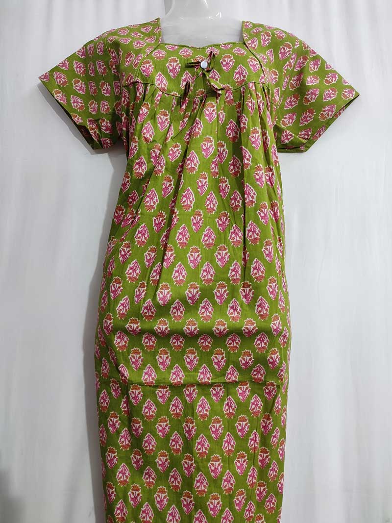 Traditional cotton nighty, 55 Inches Long -Green