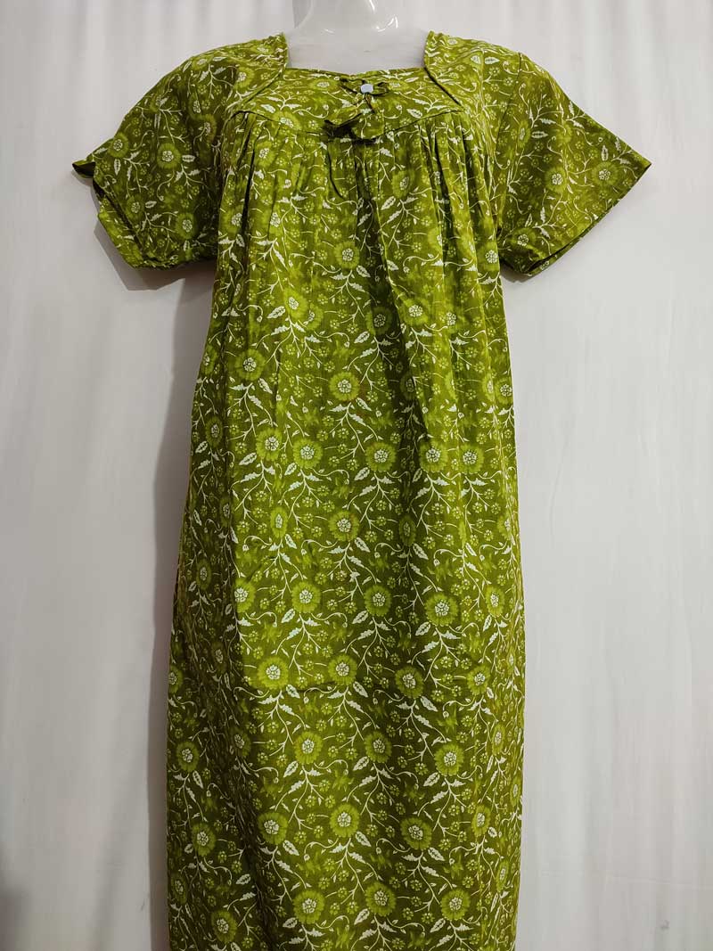 Cotton Kaftan nighty – 55 Inches Length – Light Green