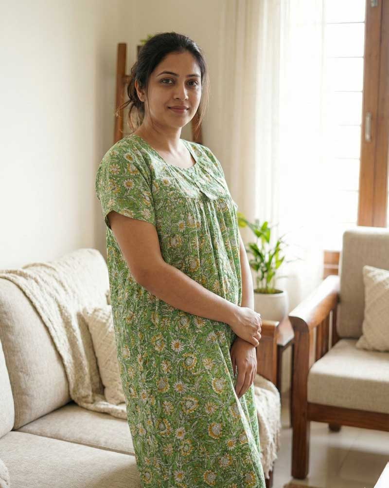 Cotton Kaftan nighty – 55 Inches Length – Light Green