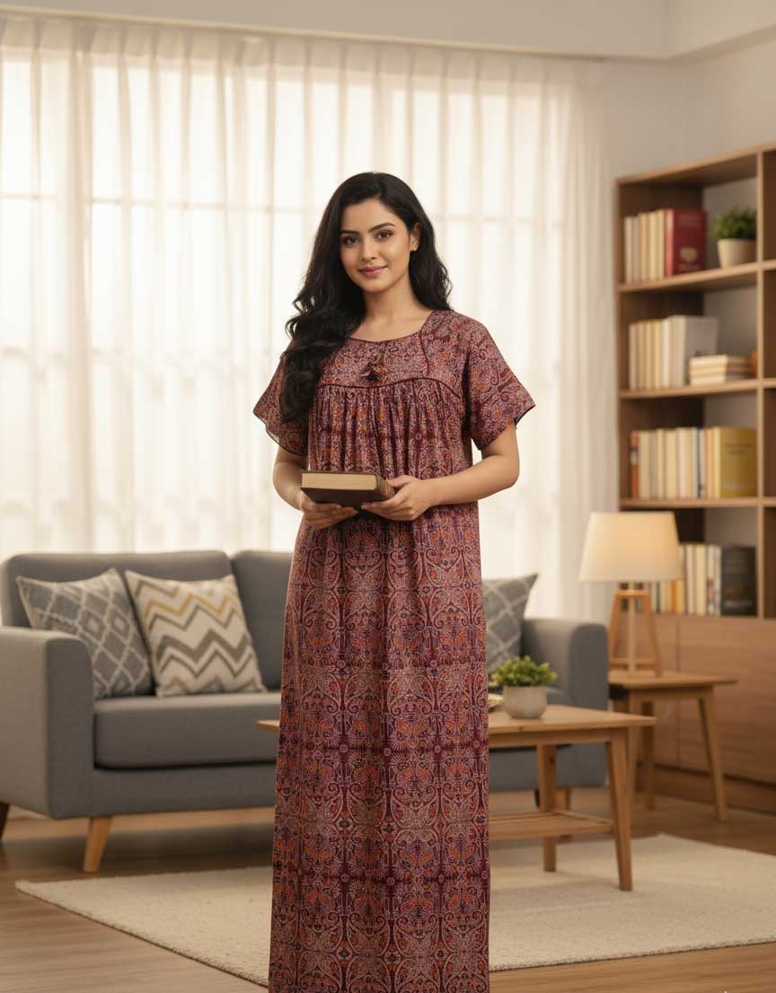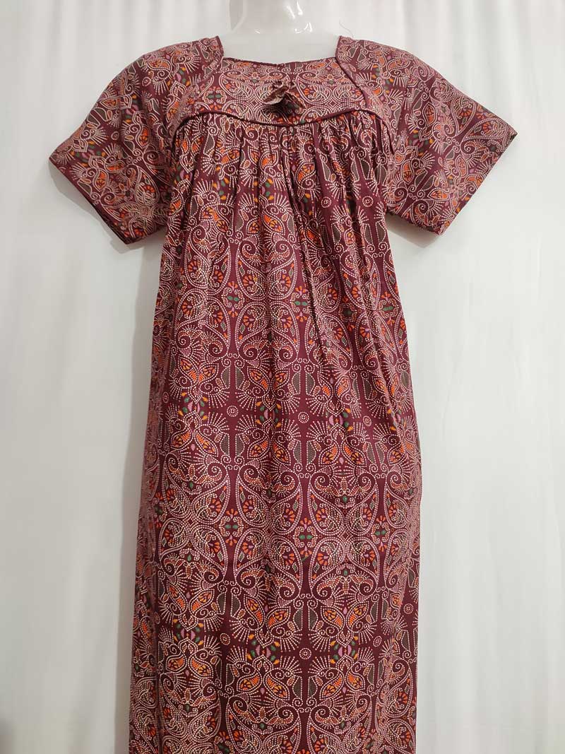 Traditional cotton nighty, 55 Inches Long -Maroon