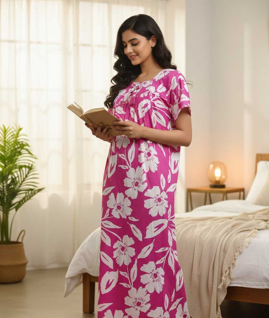 ₹489Comfortable Cotton Nighty With Buttons, 57 Inches Long – Pink