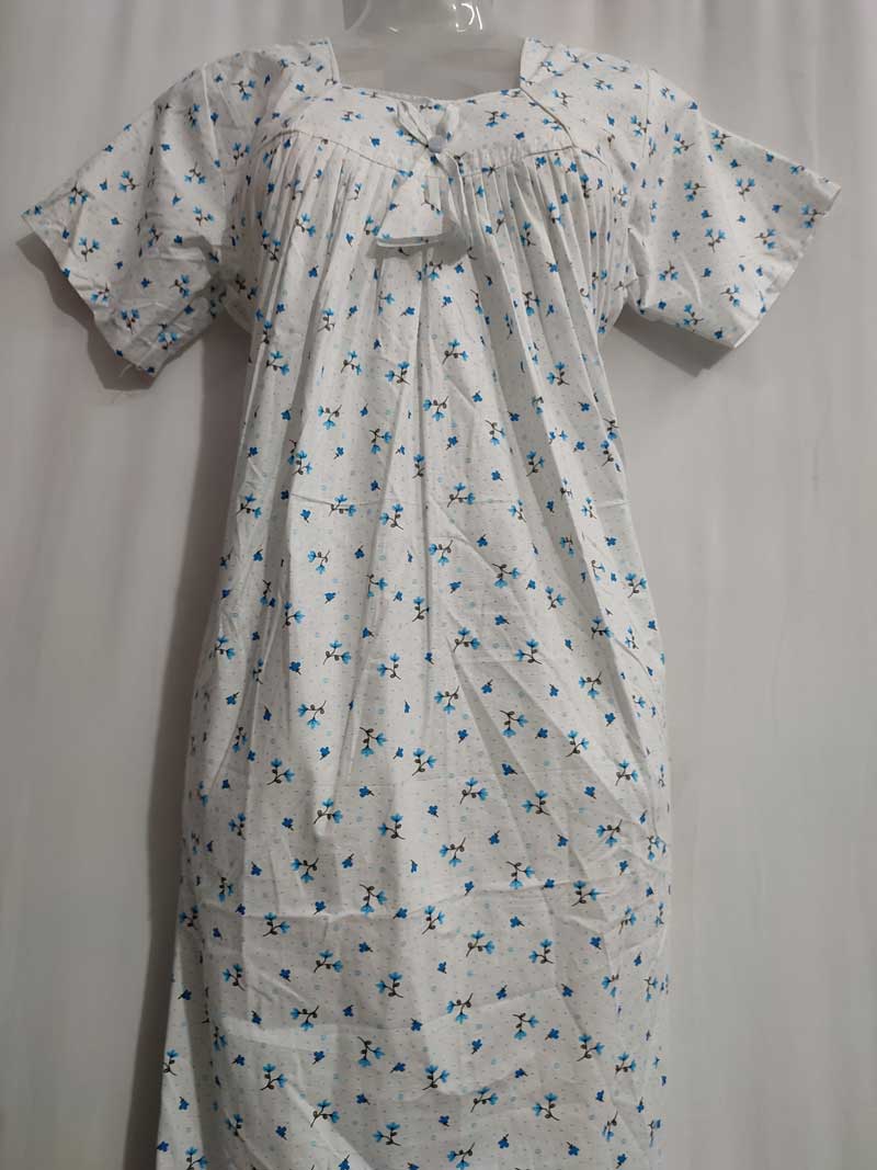 Traditional cotton nighty, 55 Inches Long – White + Blue