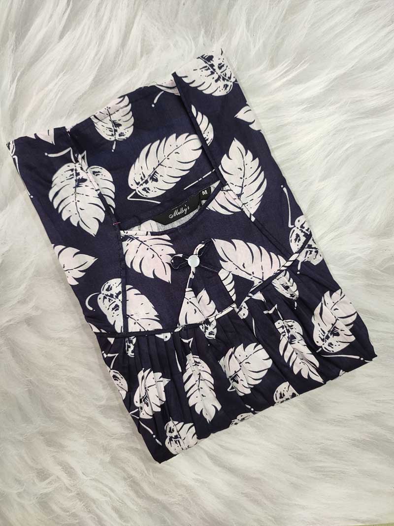 Traditional cotton nighty, Thali detailing on neck, 55 Inches Length – Blue colour