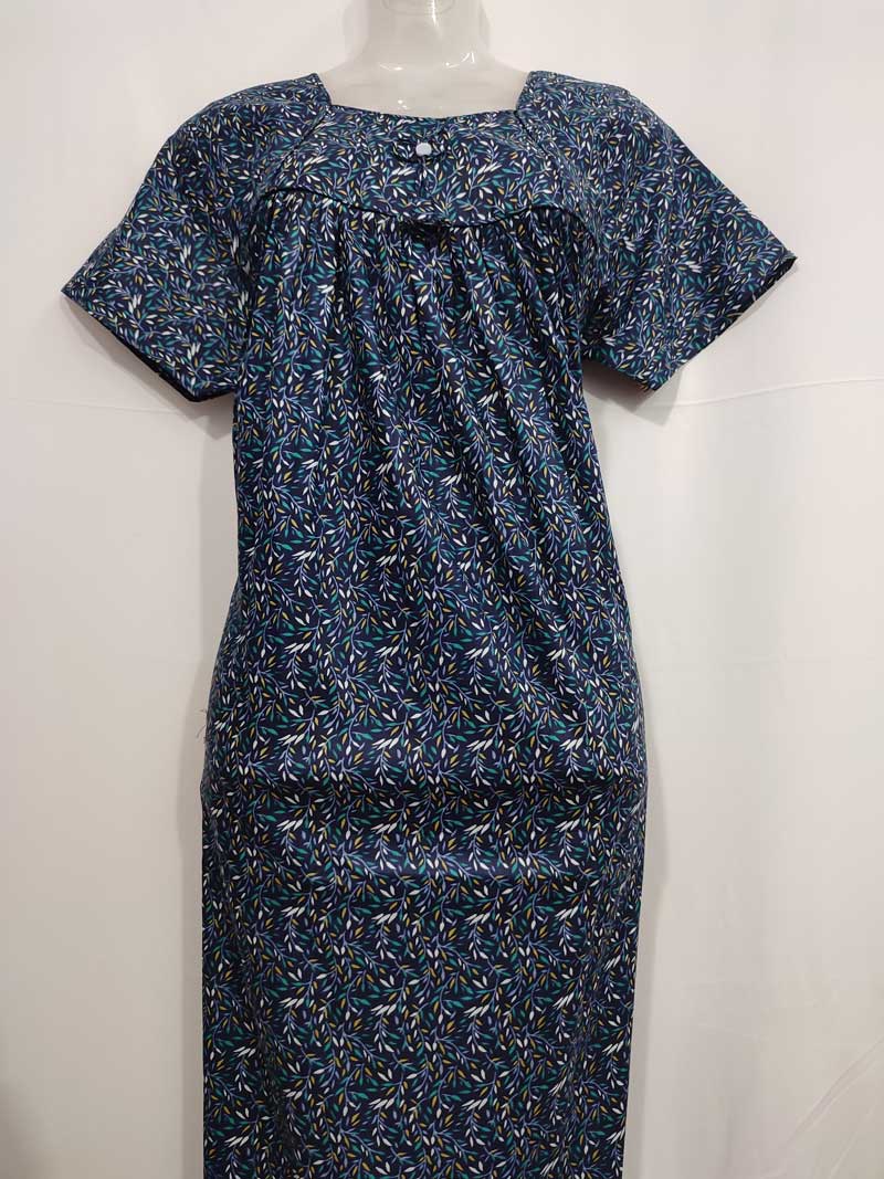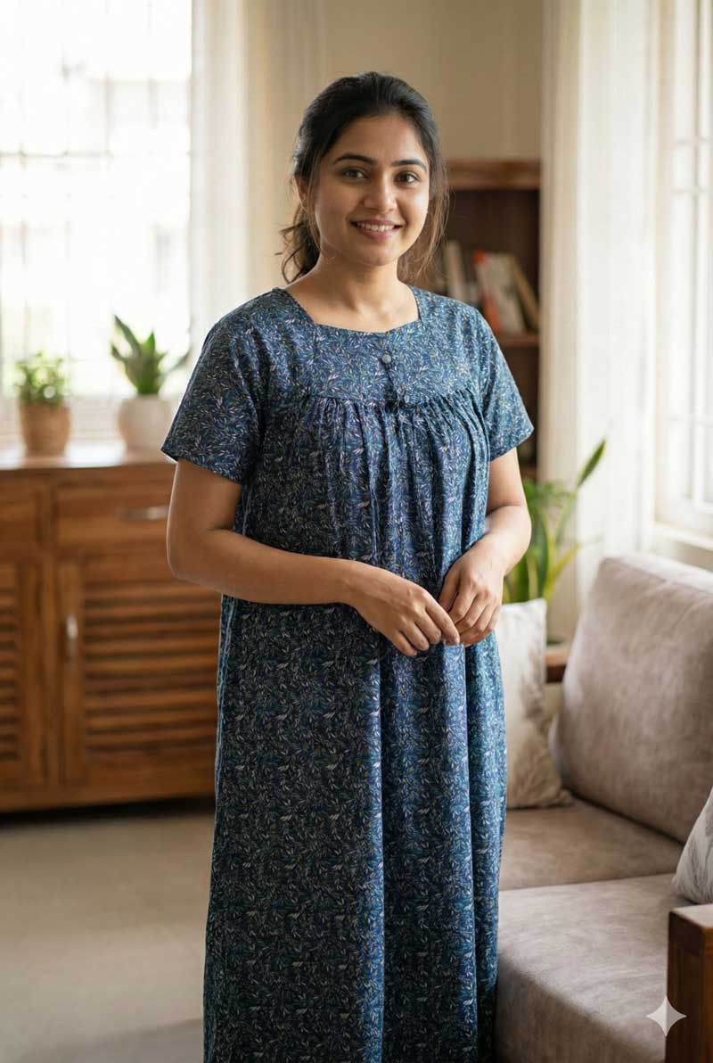 Traditional cotton nighty, Thali detailing on neck, 55 Inches Length – Dark blue colour