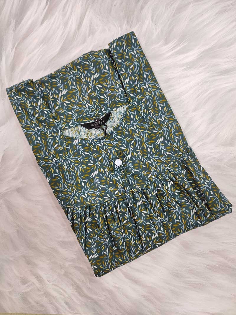 Premium Quality Cotton Kaftan nighty – 55 Inches Length – Green