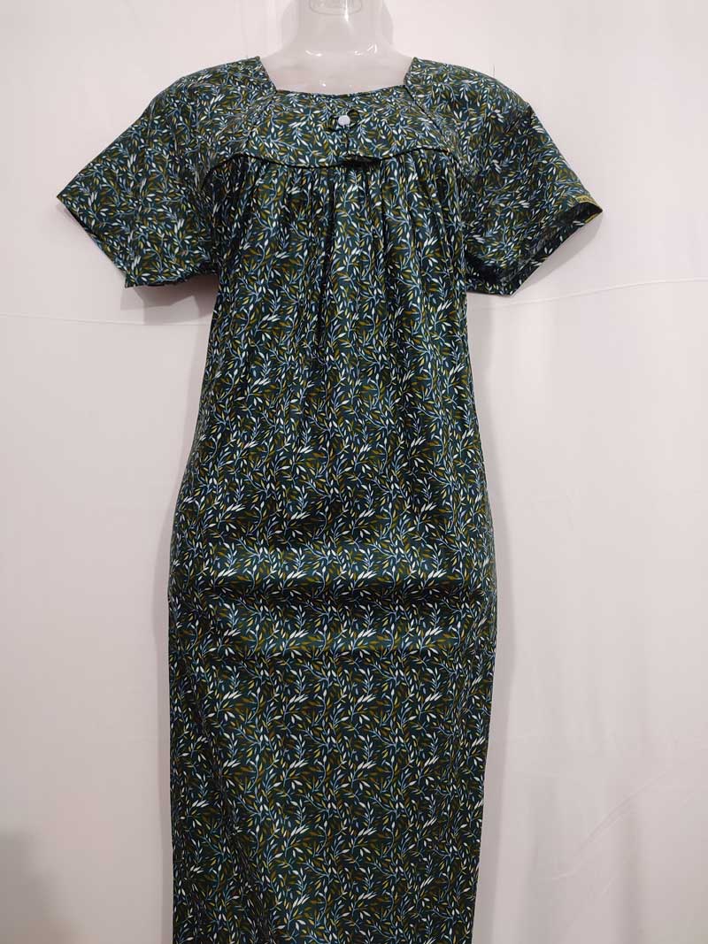 Traditional cotton nighty, Thali detailing on neck, 55 Inches Length – Green colour