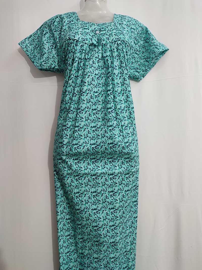 Traditional cotton nighty, Thali detailing on neck, 55 Inches Length – Light green colour